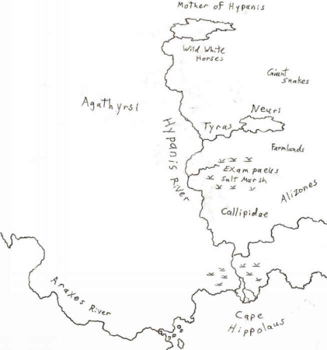 M: Here's more of Herodotus' world. We're moving more-or-less east-northeast through central Asia