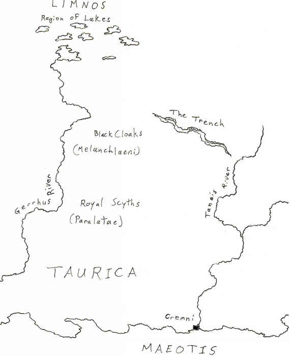 M: In Map 3 you can see that the ocean along the bottom is called the Maeotis. "The Trench" is not the upcoming Tartarus, but a fortification dug by slaves. Those are details in Herodotus I couldn't fit in to our already wordy web-pages.