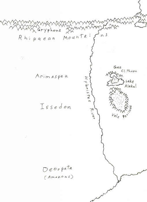 M: Maps 5 and 6 cross into the world of Aristeas' lost book, The Arimaspea. It might have been as well known as The Odyssey or The Iliad had it survived.